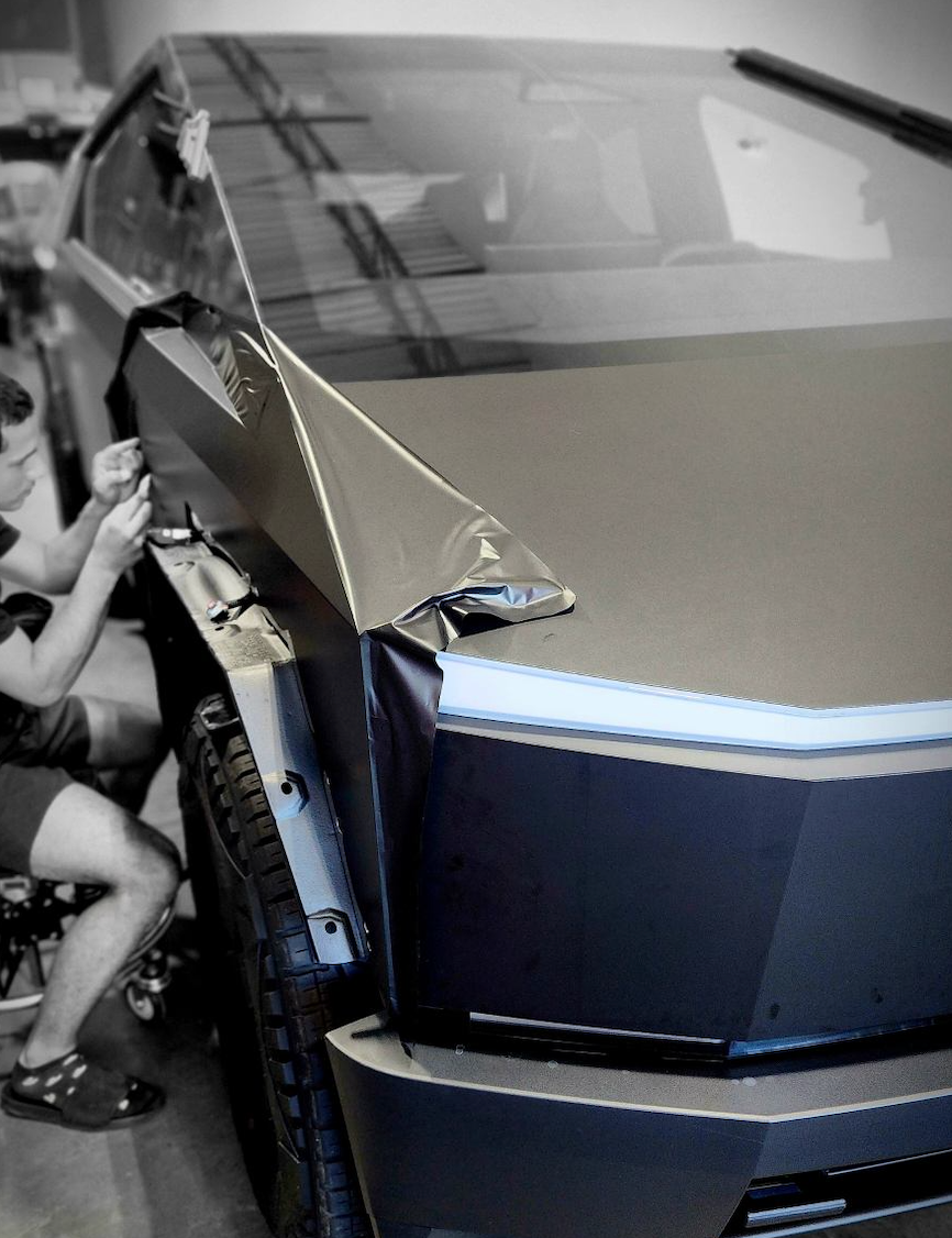 - Tesla Cybertruck Wraps: Brushed metal textures, matte black stealth wraps, and digital camo options.