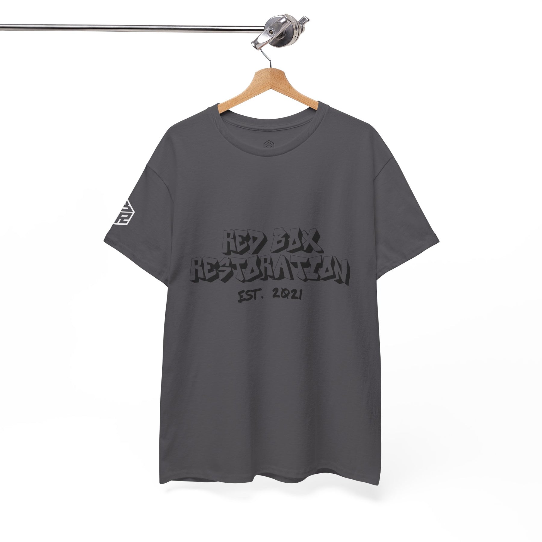 White tee, graffiti-style RED BOX RESTORATION EST. 2021 hit across the chest like a tag on a clean wall. It doesn’t scream, it just sits there like, “I know what I’m about. You can catch up.”It’s got that street feel without trying too hard — looks like something you picked up from a little back-alley boutique, not a bargain bin. Worn-in vibe, intentional design. You can throw it on with denim, cargos, or joggers and it always reads the same: low-key serious about cars, high-key done explaining it.